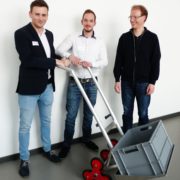 Alexander Behling und Daniel Fricke haben für die Fa. MeVaTec Metall GmbH aus Hannover (gegründet von ehemaligen Absolventen unserer Technikerschule) eine Spezialkonstruktion einer Sackkarre für genormte Euroboxen entwickelt. Wichtig war dem Auftraggeber eine kompakte, leichte, sichere und treppengängige Konstruktion. Der beim Technikerforum vorgestellte klappbare Prototyp aus Aluminium mit stufenloser Höhenverstellung ist besonders geeignet beispielsweise für Maler-, Metallbaufirmen oder die Feuerwehr.
