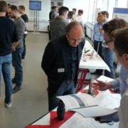 Im Anschluss an die Eröffnungsreden vor großem Publikum im Konferenzraum H33 im Erdgeschoss präsentierten unsere Absolventen ihre Projektarbeiten auf der zweiten (Metalltechnik) und dritten (Elektrotechnik) Etage an Messeständen und in speziellen Vorträgen.