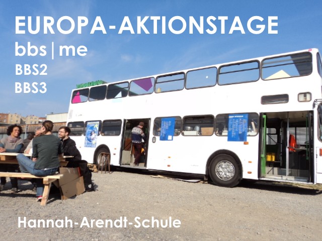 Die Europa-Aktionstage sind ein Beteiligungsprojekt aus dem Projekt Europa ist HIER! www.hier-ist-europa.de, sie finden auf dem gemeinsamen Schulgelände von der bbs|me, BBS2, BBS3 und Hannah-Arendt-Schule im Rahmen einer gemeinsamen Projektwoche statt.