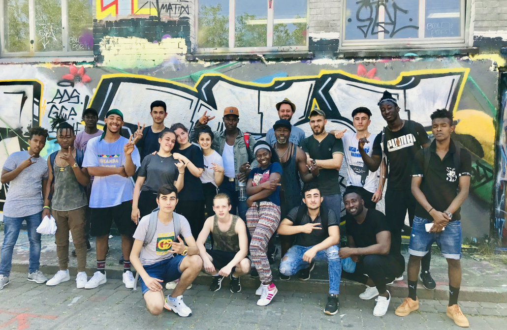 Das Foto zeigt die DynamicDance Gruppe, die unter Anleitung von Olando eine Choreographie einstudierte und auf dem Fest der Nationen performte.