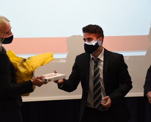 Das Wetter verhinderte eine Veranstaltung im Freien, so dass am Ende die Überreichung der Zeugnisse im Gebäude stattfinden musste, mit mundschutztragenden Beteiligten. Trotz dieser Umstände war es eine schöne, unterhaltsame aber auch besinnliche Abschlussfeier, die lange in Erinnerung bleiben wird.