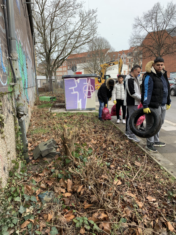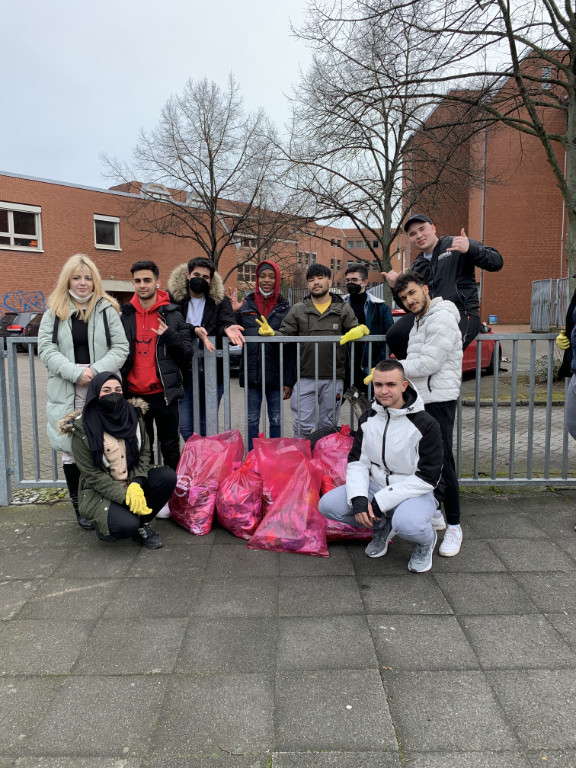Unter dem Motto haben die Schüler der BBS-ME Berufseinstiegsschule die umliegenden Grünflächen gereinigt