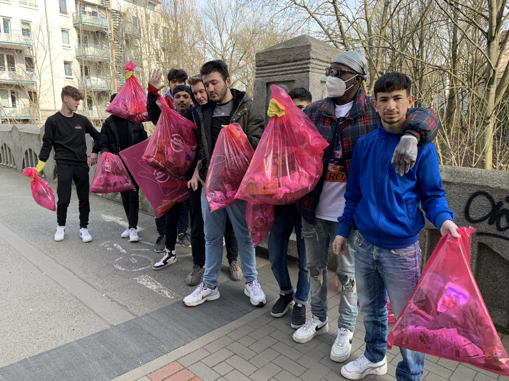 Am Leine-Ufer der Brücke Dreyerstraße hat die BTS1B21 das Ufer gesäubert. Die Schüler waren hochmotiviert und haben alle anliegenden Straßen und Gebüsche von Scherben und Unrat befreit. Auch hier wurden gut erhaltenen überflüssige Gebrauchsgegenstände gefunden: Feuerzeuge, Metalldosen, Geschirr und Kleidung.