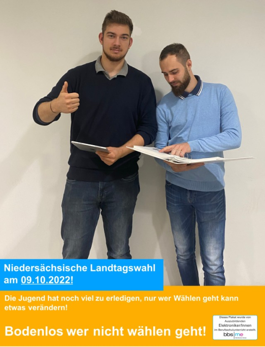 In den vergangenen Wochen haben Auszubildende im Politikunterricht die Wahlbeteiligung und was sie für die Demokratie bedeutet in den Fokus genommen. Sie reflektierten dabei ihre eigene Motivation, wählen zu gehen und suchten nach Möglichkeiten, andere für eine Wahlbeteiligung bei der Landtagswahl am kommenden Sonntag zu motivieren.