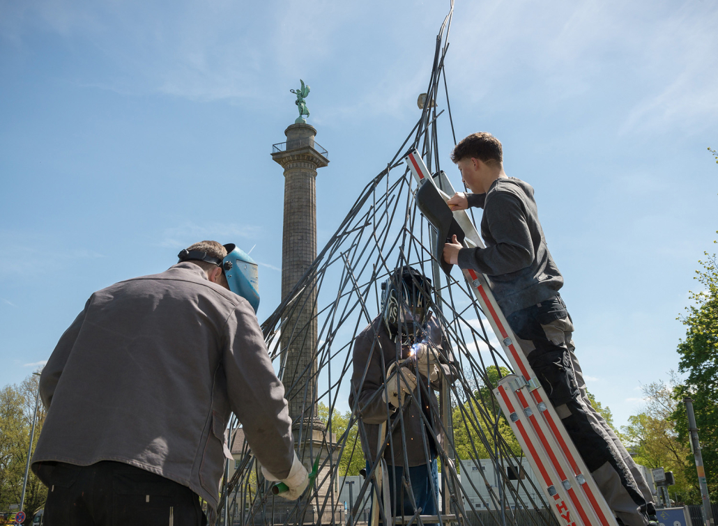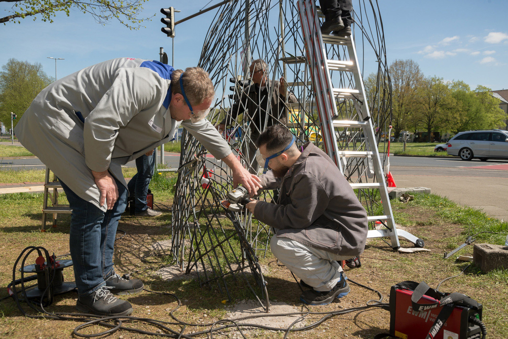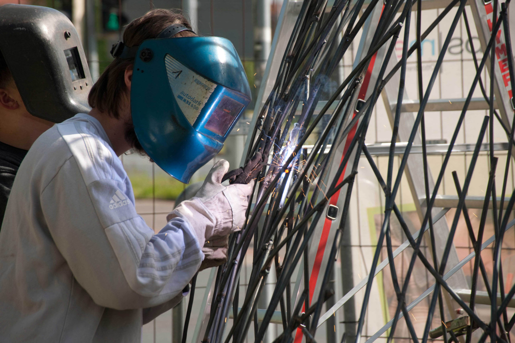Schüler der Fachrichtung Metall erschaffen vor dem Eingang der BBS-ME eine imposante und gleichzeitig leichte Stahl-Skulptur