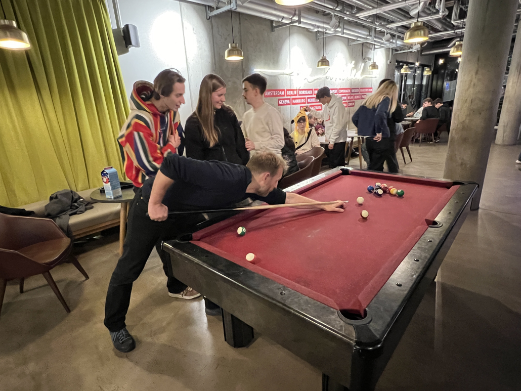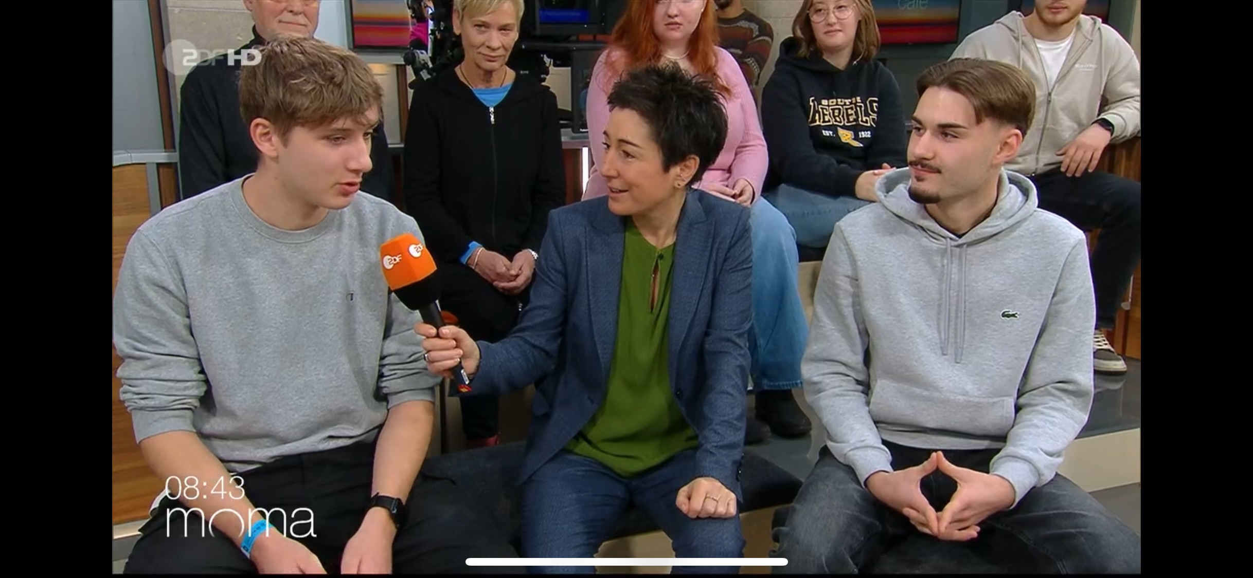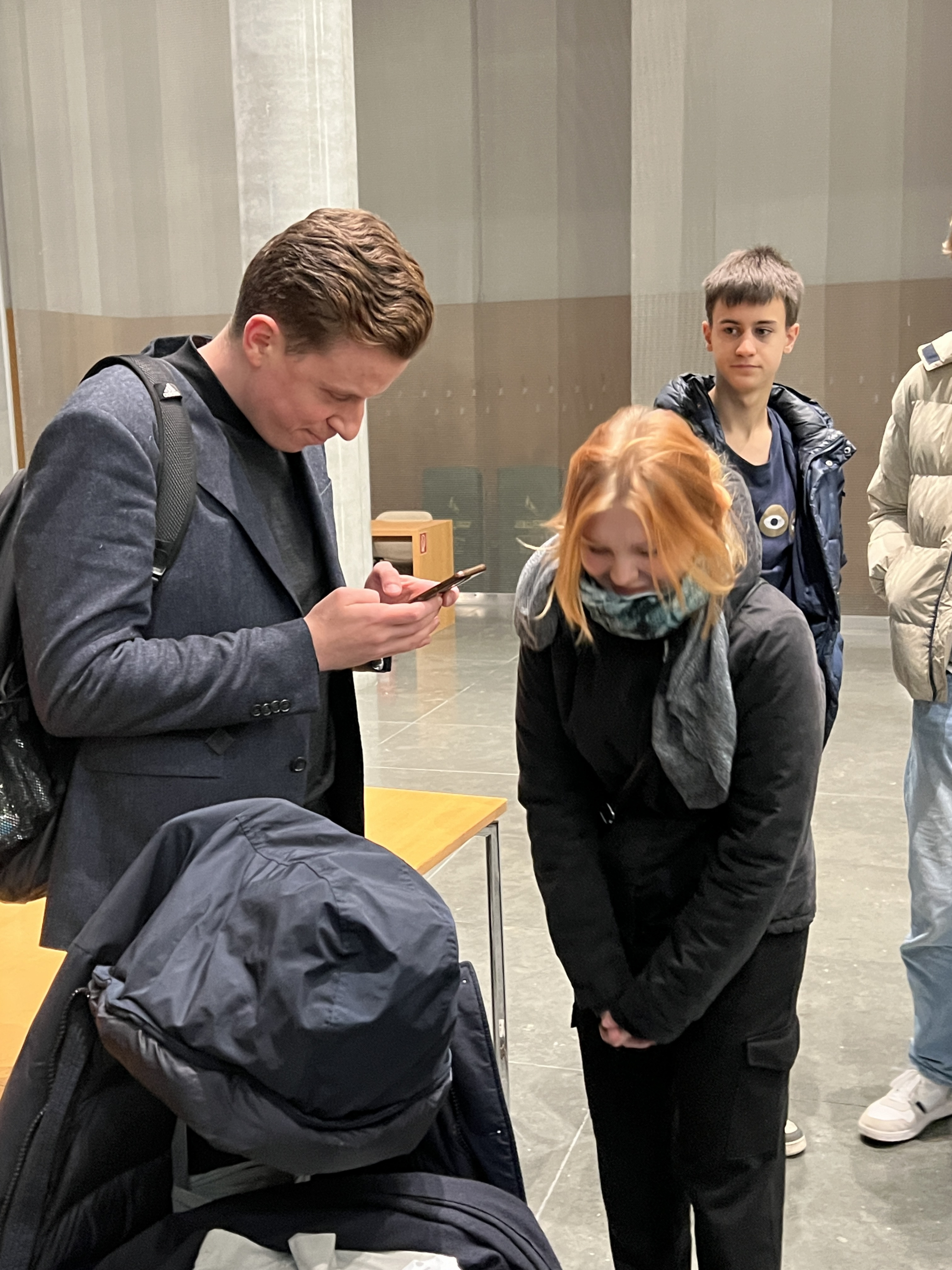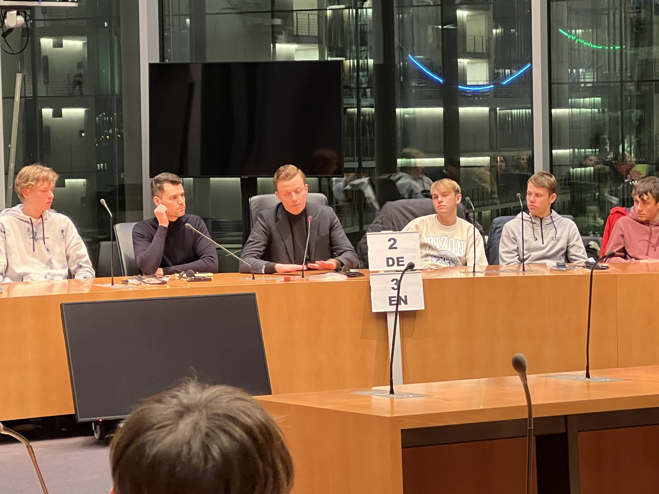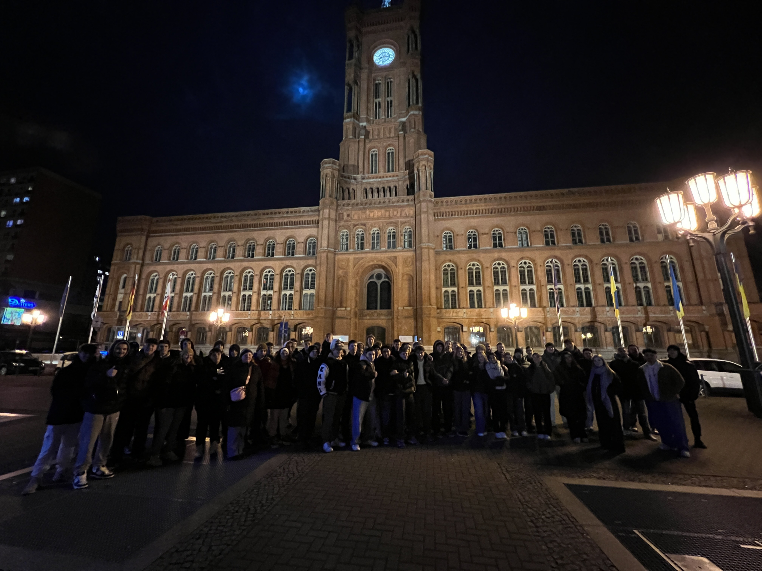 Gerade noch rechtzeitig, nach einer ungeplanten Pressekonferenz in Hannover, erreichte er den beeindruckenden Anhörungssaal des Marie-Elisabeth-Lüders-Hauses am Reichstag, in welchem bereits über 70 Schülerinnen und Schüler (SuS) mit ihren Fragen auf ihn warteten. Die SuS zeigten dabei besonders großes Interesse an der hannoverschen Lokalpolitik, aber auch zu außenpolitischen Themen, wie wirtschaftliche Abhängigkeiten zu China oder den USA. Nach einer 90 minütigen Diskussion waren die SuS entlassen. Ein Teil der Gruppe ging anschließend noch zum Weihnachtsmarkt auf den Alexanderplatz, bis die meisten müde ins Bett fielen. Denn angefangen hatte der Tag schon sehr früh, da einige SuS bereits um 7:30 Uhr einen Besuchstermin im ZDF- Hauptstadtstudio hatten. Bei der  Aufzeichnung des Morgenmagazins waren sie live im Fernsehen zu sehen. Zwei Schüler wurden sogar von der Moderatorin Dunya Halali interviewt.