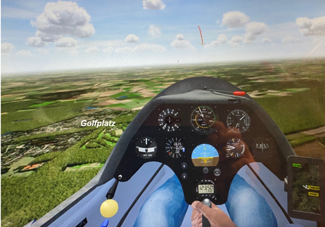 Das Besondere an dieser Simulationssoftware ist, dass bei ihr das Gebiet des Flugplatzes Großes Moor und seine Umgebung abgebildet wird, auf dem der flugpraktische Teil stattfindet. So kann man sich schon während des Simulatorfliegens an genau den Geländemerkmalen orientieren, wie das auch beim praktischen Fliegen erforderlich ist. Dies ist entscheidend für ein schnelles Erlernen des Fliegens besonders von Segelflugzeugen.