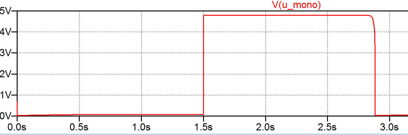 Nachfolgend dargestelltes Signal ist das Ausgangssignal der „Monostabilen Kippstufe“. Es wirkt auf den Ausgang der Schaltung, auf den Lautsprecher. D. h. kommt dieses Signal am Lautsprecher an, piepst der Lautsprecher für 1,5s und gibt somit das Signal, dass die Tasse voll ist.