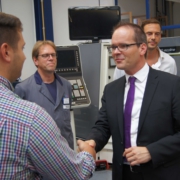Im Anschluss an die Eröffnungsreden vor großem Publikum im Konferenzraum H33 im Erdgeschoss präsentierten unsere Absolventen ihre Projektarbeiten auf der zweiten (Metalltechnik) und dritten (Elektrotechnik) Etage an Messeständen und in speziellen Vorträgen.