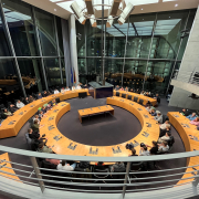 Gerade noch rechtzeitig, nach einer ungeplanten Pressekonferenz in Hannover, erreichte er den beeindruckenden Anhörungssaal des Marie-Elisabeth-Lüders-Hauses am Reichstag, in welchem bereits über 70 Schülerinnen und Schüler (SuS) mit ihren Fragen auf ihn warteten. Die SuS zeigten dabei besonders großes Interesse an der hannoverschen Lokalpolitik, aber auch zu außenpolitischen Themen, wie wirtschaftliche Abhängigkeiten zu China oder den USA. Nach einer 90 minütigen Diskussion waren die SuS entlassen. Ein Teil der Gruppe ging anschließend noch zum Weihnachtsmarkt auf den Alexanderplatz, bis die meisten müde ins Bett fielen. Denn angefangen hatte der Tag schon sehr früh, da einige SuS bereits um 7:30 Uhr einen Besuchstermin im ZDF- Hauptstadtstudio hatten. Bei der Aufzeichnung des Morgenmagazins waren sie live im Fernsehen zu sehen. Zwei Schüler wurden sogar von der Moderatorin Dunya Halali interviewt.